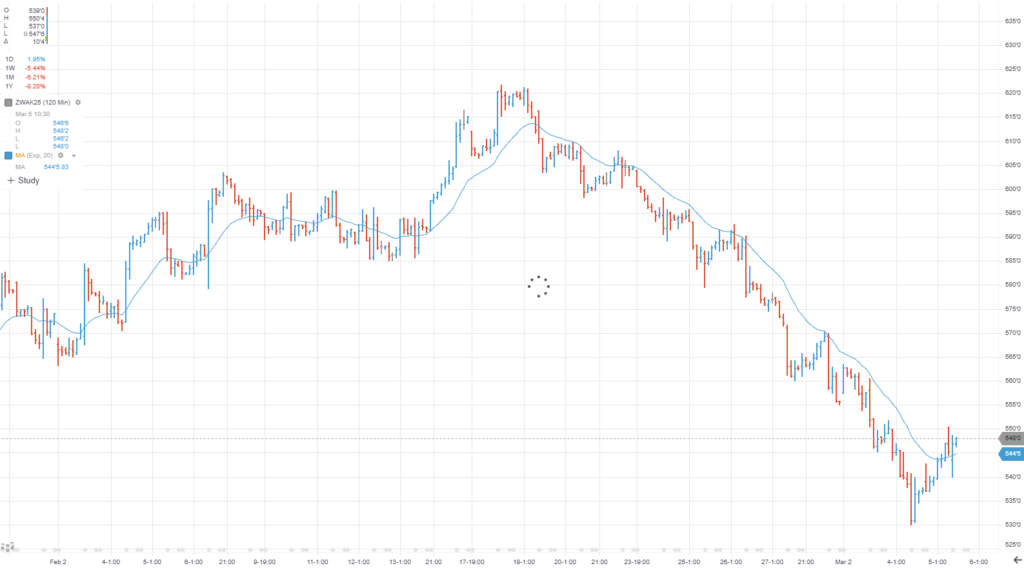 Spec Trade: Buy 2 May Mini-Chicago Wheat at the MKT, 547.2 last with a 525 stop.