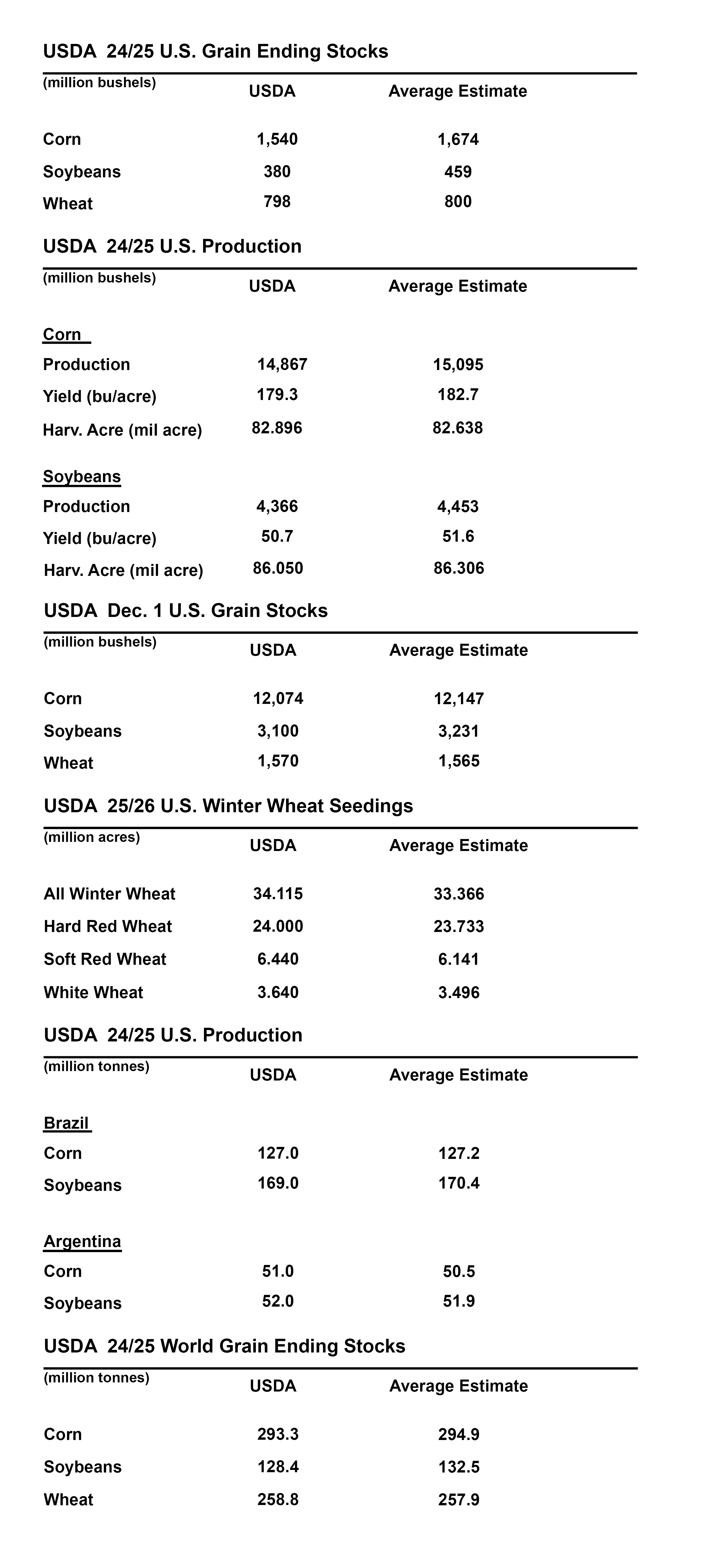 Report was Bullish, both corn and soybean yield estimates were well below average guesses. Corn was below the lowest estimate. Data, friendly for corn and soy beans, while wheat acreage was higher than the average guess.