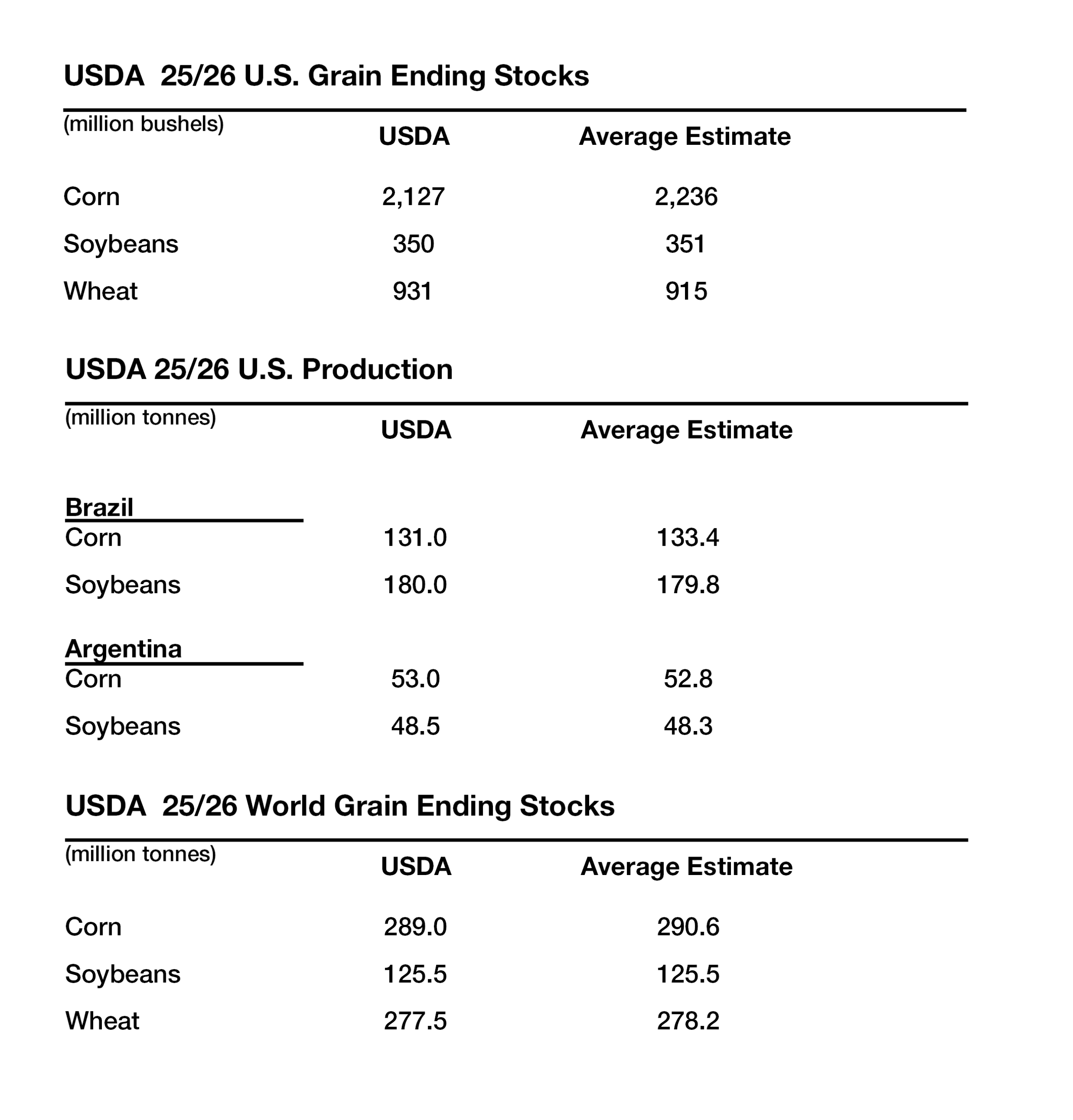USDA WASDE Grain Stocks Report 2/10/26