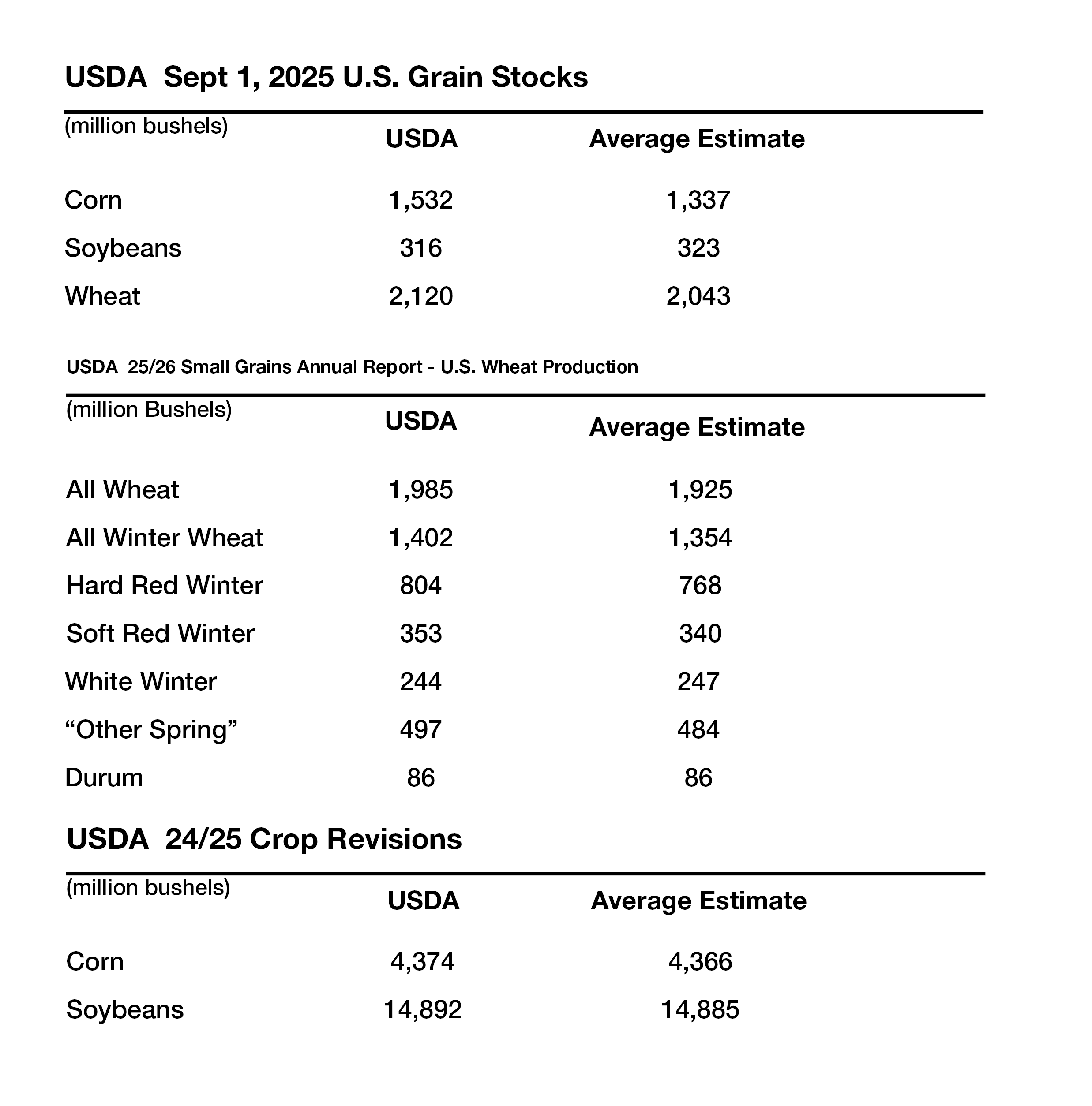 USDA WASDE Grain Stocks Report 9/30/25